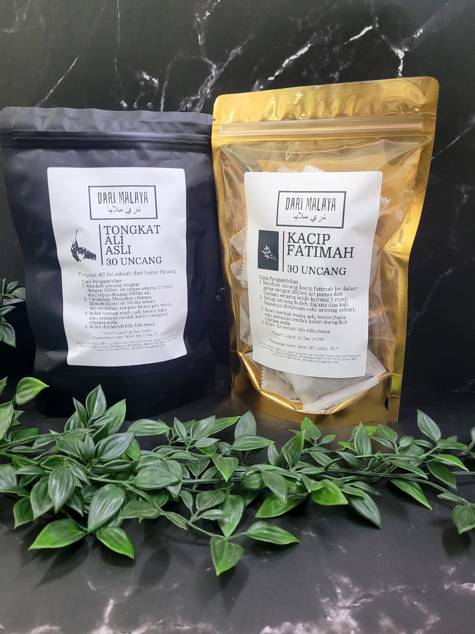 1 paket tongkat ali asli 30 uncang dan 1 paket kacip fatimah 30 uncang